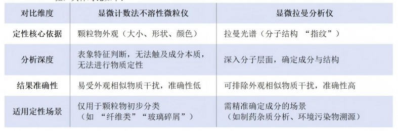 綜上,顯微計數法不溶性微粒儀與顯微拉曼分析儀在顆粒物分析中承擔不同角色,前者無法替代后者進行定性分析。二者并非競爭關系,而是互補關系,需根據具體需求合理搭配: